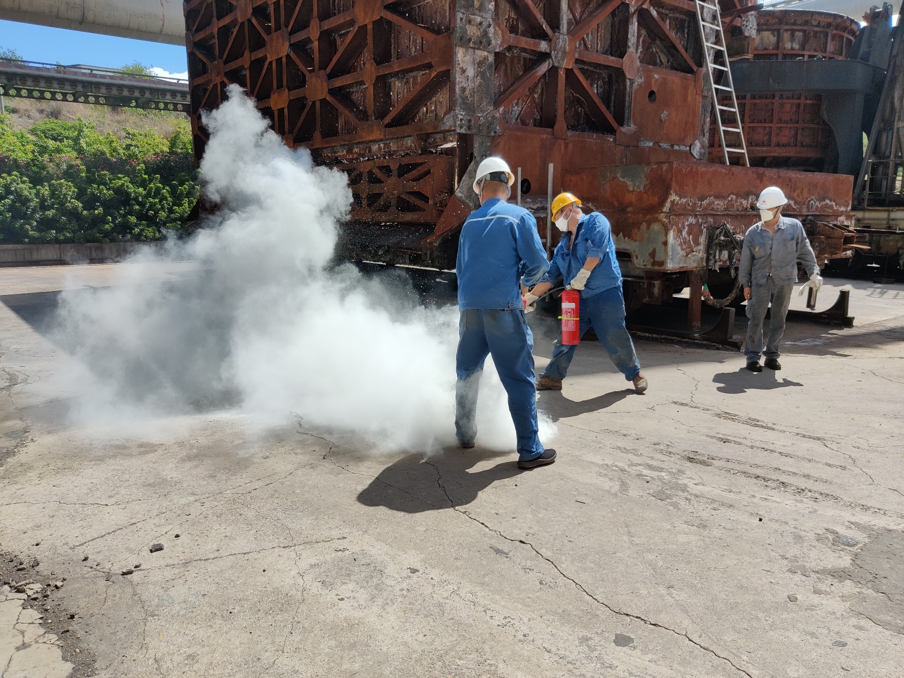 為了讓每一位員工深入了解消防應(yīng)急常識,切實樹立消防意識,真正掌握好火災(zāi)事故現(xiàn)場應(yīng)急撲救與救護的統(tǒng)籌作業(yè)流程;并具備自救互救與抗擊突發(fā)事件的應(yīng)變能力,能有組織、有順序、迅速地引導(dǎo)員工安全、快速地疏散,學(xué)會正確使用滅火器等消防設(shè)備以及掌握逃生方法。6月11日上午10點,西昌藍鼎生產(chǎn)部長孫小剛、副部長王建勇、檢修班長王成東,帶領(lǐng)生產(chǎn)一線人員共計11人,在二煉焦車間積極參加西鋼釩煉鐵廠組織的2020年消防演練。