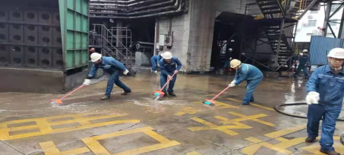 (組織人員清理現(xiàn)場(chǎng)漿液)